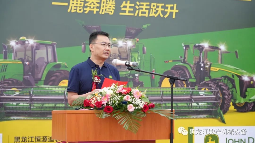 黑龍江恒源迪農(nóng)業(yè)發(fā)展有限公司總經(jīng)理杜立志發(fā)表了開場致辭(下圖)。他表示,作為迪爾授權(quán)經(jīng)銷商,恒源迪農(nóng)業(yè)將不負(fù)約翰迪爾公司和用戶朋友的信任與期待,砥礪前行、全心全力的將迪爾品牌的核心價值觀“誠實(shí)、優(yōu)質(zhì)、守信、創(chuàng)新”發(fā)揚(yáng)光大公司有著完備的市場推廣、售后服務(wù)、配件供應(yīng)體系和經(jīng)驗(yàn),相信會給用戶帶來更好的產(chǎn)品使用體驗(yàn),讓用戶創(chuàng)造更大收益,為黑龍江現(xiàn)代農(nóng)業(yè)特別是農(nóng)機(jī)現(xiàn)代化的發(fā)展添磚加瓦